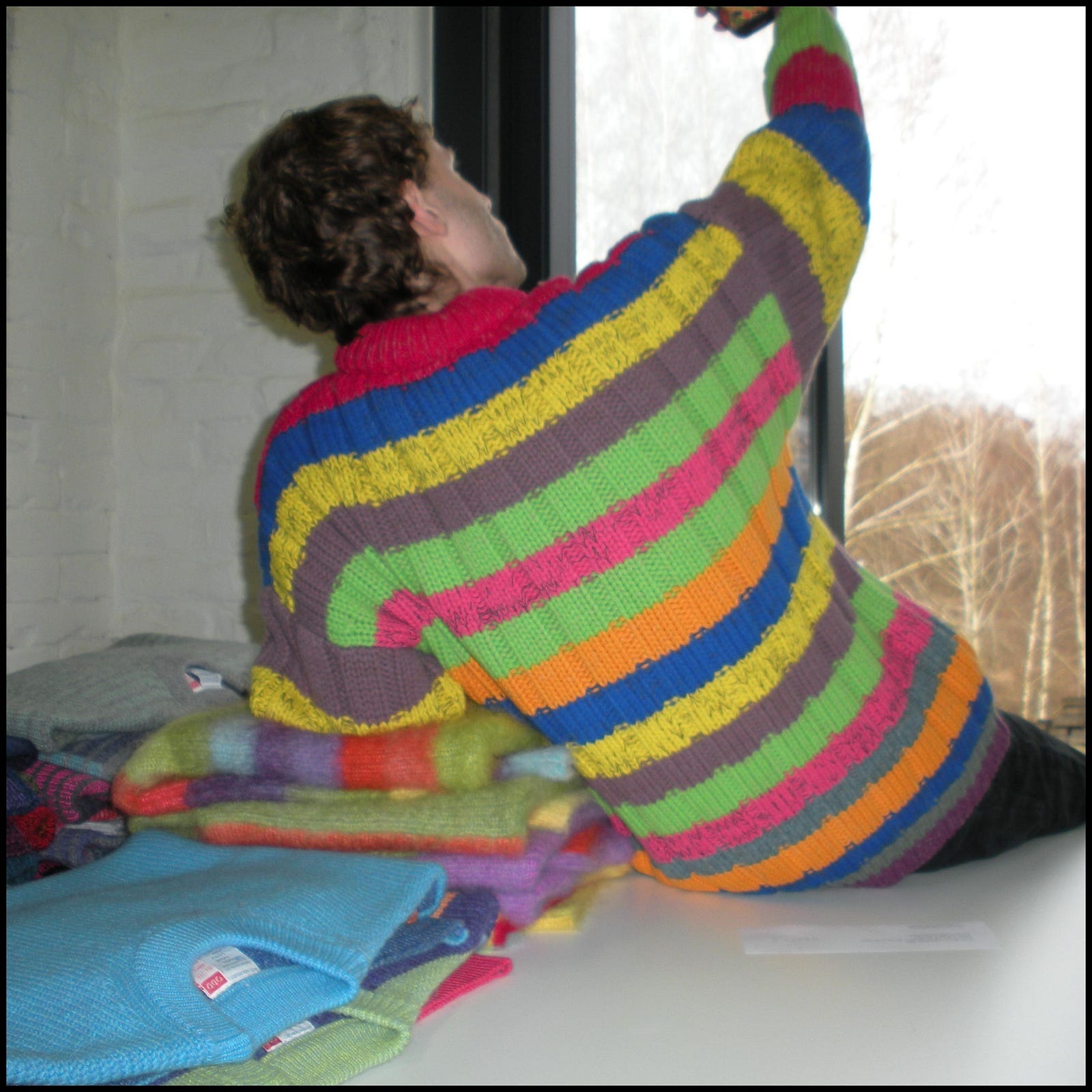 Besides hacking Squiggles, Tribute Brand managed to hack one of fashion’s biggest problems by producing fully sustainable. This was crucial, as they refuse to adhere to a system that’s well on its way to destroy our planet. The team collaborated with the Waste Yarn Project, who repurpose leftover yarns to create incredibly soft 100% zero-waste knitwear. The artisans take about twelve hours to craft each sweater by hand. The randomness of available yarns means you might luck out with a high percentage of cashmere or none at all. It also gives the sweaters a beautiful toned-down look. While the original artwork is beloved for its sensory overload, ODDS are colorful yet wearable. The sweaters can only be ordered in limited quantities (just 999 unique ODDS will ever be made), during limited times, and are produced strictly on-demand. This prevents overproduction, in sharp contrast to the non-stop stream of fashion that floods warehouses and landfills.