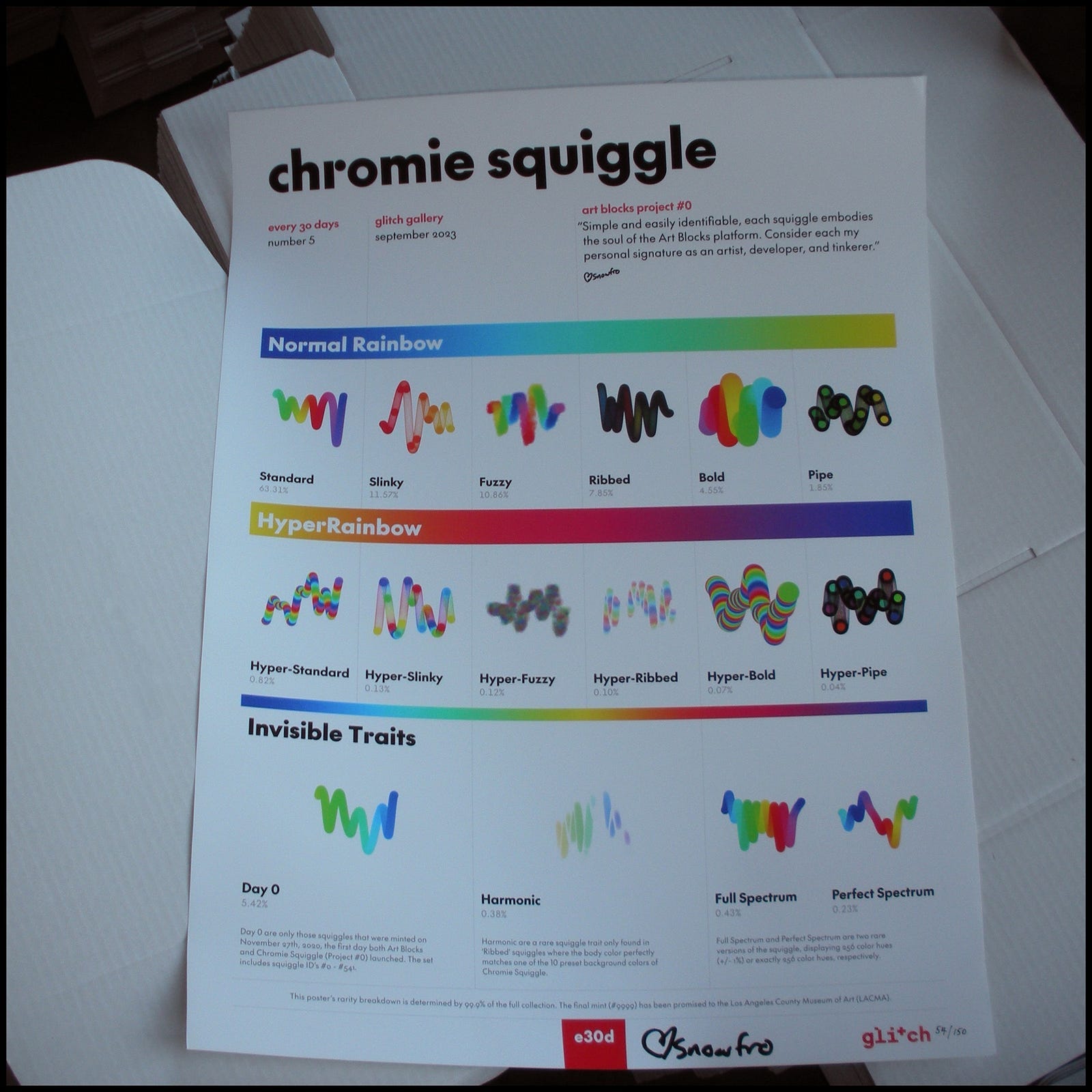 ODDS is rooted in the generative art movement, which embraces the idea of human and machine working together. An important medium within this genre is the use of generative algorithms. These introduce randomized variation, resulting in an almost infinite number of unique outcomes. Generative art recently saw renewed momentum and recognition. Erick Calderon, founder of generative art platform Art Blocks, is one of the driving forces behind this revival. His critically acclaimed Chromie Squiggles were first to launch on the platform and are revolutionary because the generative process happens entirely on the blockchain. The collection is now considered one of the most influential artworks in the space.
